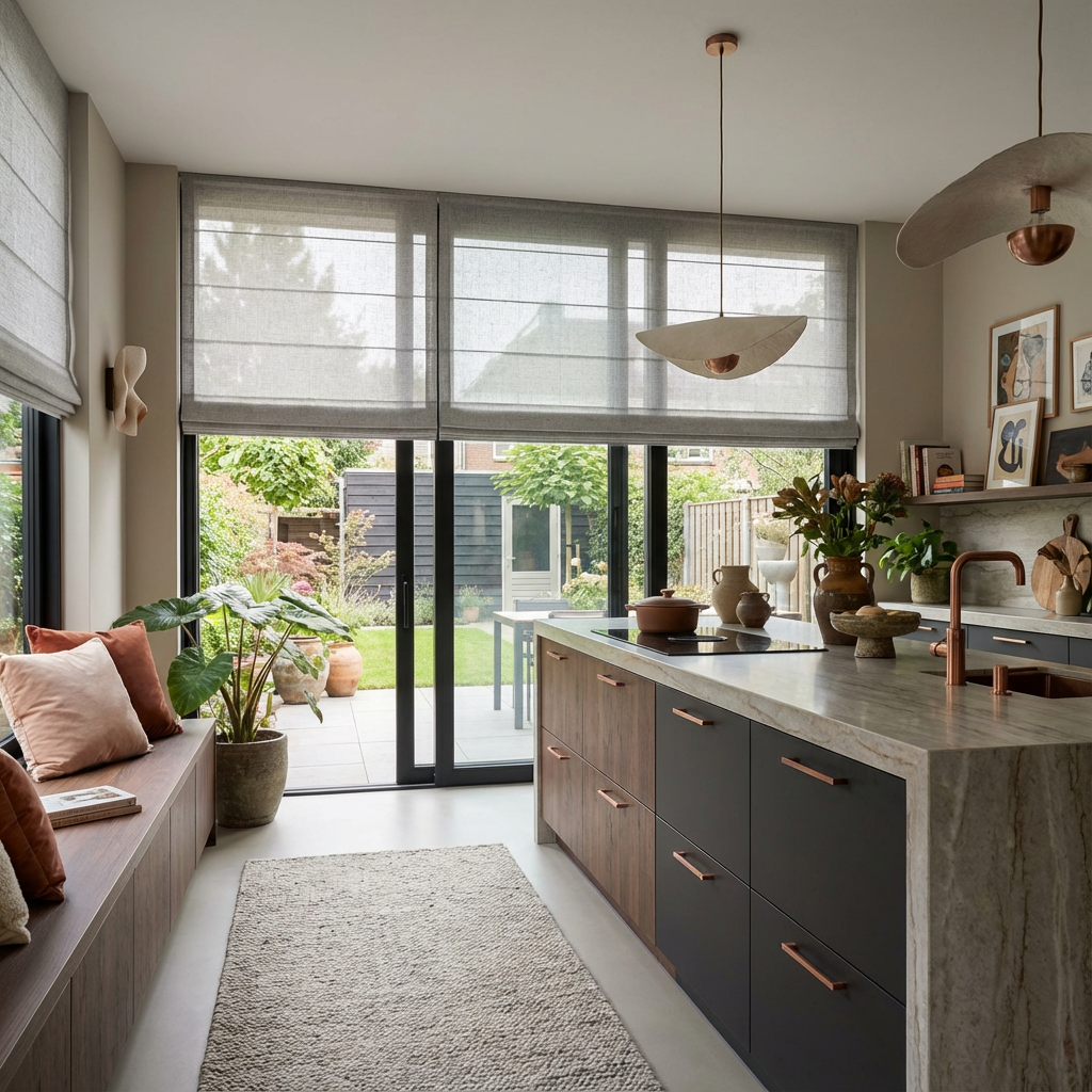Ontdek onze zorgvuldig geselecteerde collectie vouwgordijnen, volledig op maat gemaakt voor jouw interieur. Kies uit talloze stoffen, kleuren en transparanties en geniet van stijlvolle raamdecoratie die sfeer, comfort en privacy combineert.